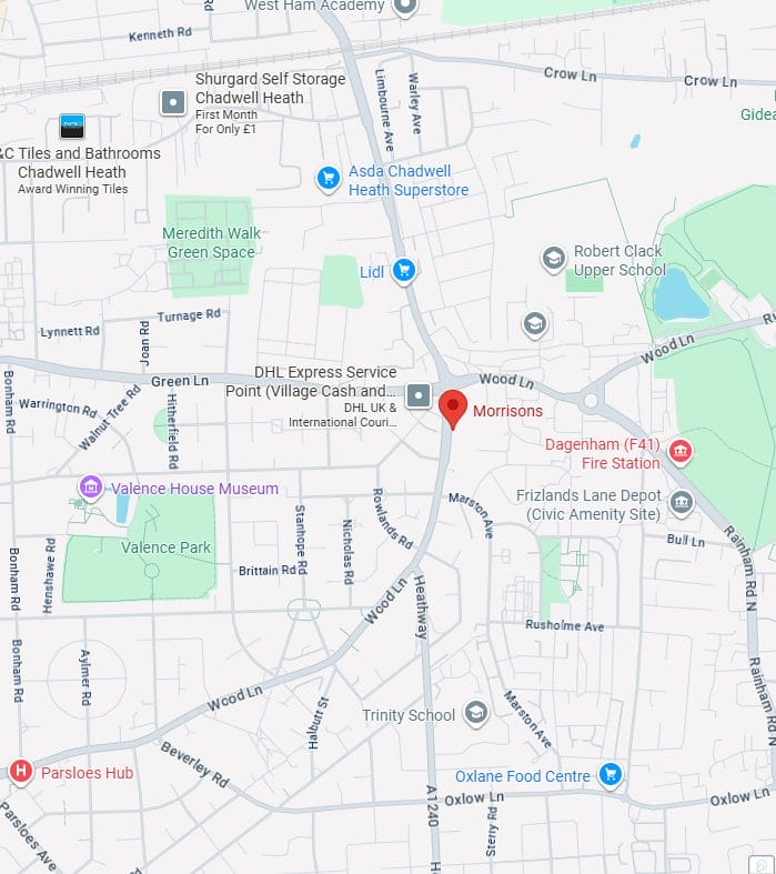 The new Becontree Heath filling station is located on Wood Lane in the Morrisons car park. For reference this is between Dagenham Central Park and Valence Park and easy access from major A roads.